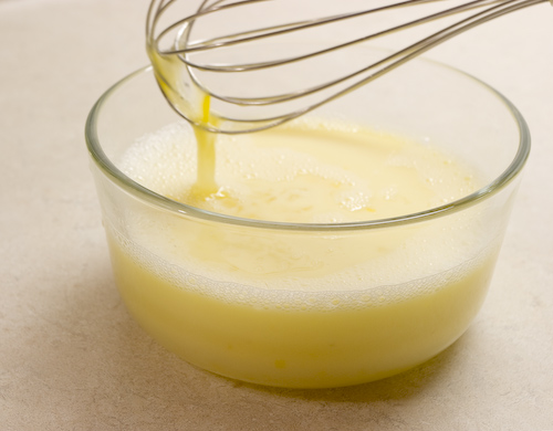 Next, put the eggs, cream, Worcestershire sauce, hot pepper sauce, salt, and black pepper into a bowl, and proceed to whisk them all together until everything is thoroughly incorporated.