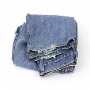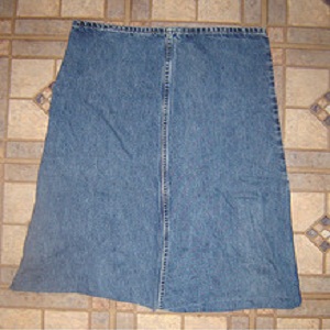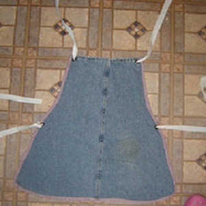 Pick up an old pair of jeans you no longer wear. Look for a pair that has loose/wide legs because that is the part you are going to use for your apron.