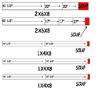 Screw (1) 20" board on each end of (2) 42 .5" boards to make a box frame for the top of the bench. Use the square to ensure that corners are of 90°. To make inside bracing screw one 17” board at the distance of 9” from the both ends of the frame. Now screw one 17” board at the center of the frame. Keep the surface of boards even with the surface of frame. Fix the top boards by cutting the 1X4X8 boards to the length of the frame and fix them to the top of the frames by using 2 screws in each board.