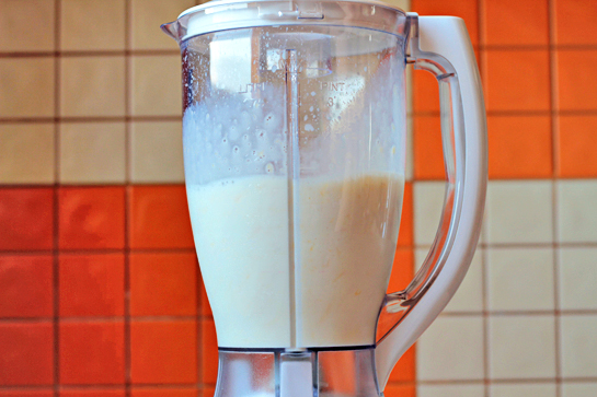 Utensils: Blender, medium-sized bowl, spoon, milk jar.