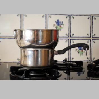 When water in the larger pan comes to boil, take it off the stove and cover it with a lid to stop the steam from escaping. Let the pan cool to room temperature. With cheesecloth, strain the liquid from beet-glycerine mixture. This is your cheek tint. Make sure you strain all the liquid and that the liquid does not contain pieces of chopped beat because it may bleed further and alter the colour of the cheek tint.