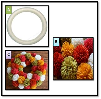 It is simple to make and requires a glue gun, Styrofoam ring and few yarn flowers, also known as pom-pom flowers. Follow the given below steps to make your own pom-pom wreath:
