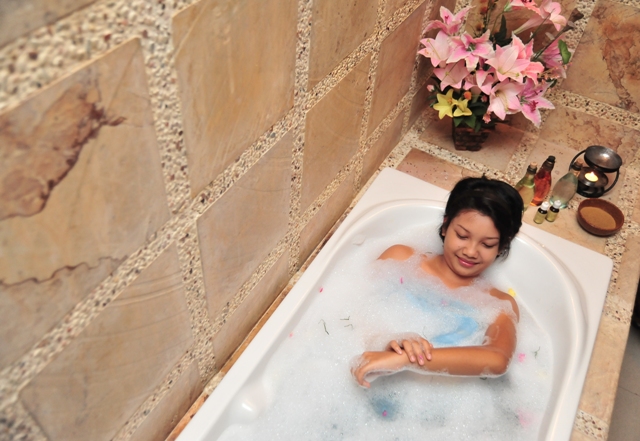 Finally, slip in and start bathing. Use a sponge, a washcloth, or a loofa to rub off dead skin cells and aid the effectiveness of the milk bath. Soak in the mixture for at least 20 to 30 minutes, to allow the nourishing and moisturising properties of the milk bath to penetrate your skin and lend it a glowing touch. Once you are done, rinse your body, and pat it dry.