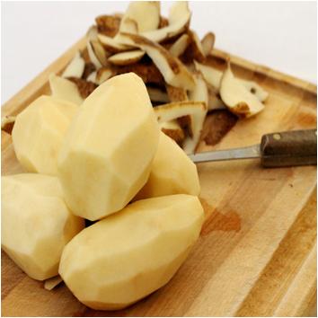 In the meantime, peel the 1 ½ lbs of Yukon gold potatoes, using a sharp knife.