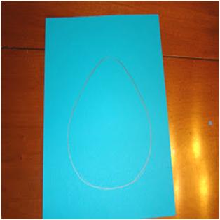 Choose a plain card stock of your favorite color, fold it into half and set it on a smooth surface. Now, draw a perfect large egg right in the center, using a lead pencil.