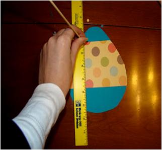 Turn around the strip of decorative paper and place it on the egg shape, lining up the edges properly.