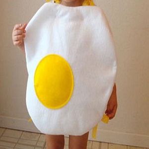 Take a white sheet or towel, fold in half and cut in an oval shape. Sew together the two sides leaving room for your child's arms. Cut another oval out of a yellow sheet and sew it over the white one. Simple but unique idea to make your baby stand out.
