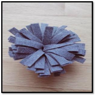 Peel back gently the layers of fringe in order to give it the desires shape. Now make minor experiments to give your fringed felt flower a beautiful haircut, trimming fringe that are uneven or too long – as you like.