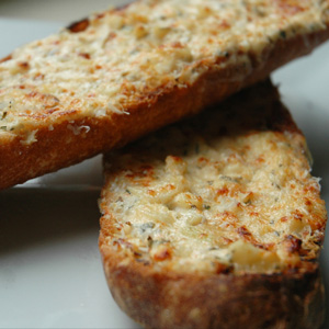 Caramelized garlic onion bread is the perfect side order with any soup.