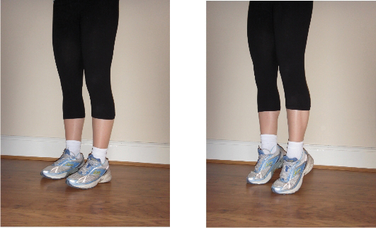 Heel raises are simple. Stand with your feet shoulder-width apart. To maintain balance, place your hands on your hips. Now lift you heels from the ground to the point where you are standing only on your toes. Stay in this position for five seconds before gradually coming down. You can easily do three sets of 40 each day to help your knobby knees.