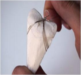 Pick the shark tooth and gently hold the wire loop against its back. Now, wrap the wire around the right side of the tooth and then the left side – three wraps on both sides.