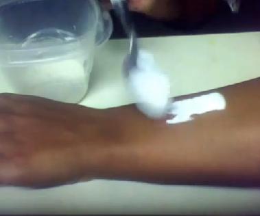Now apply this mixture to any area of your skin and let the bleach dry. This can take anywhere from 15 minutes to 30 minutes.