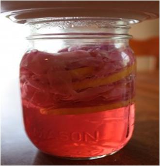 Place the jar in a refrigerator in order to thoroughly cool the collected rose petal water.