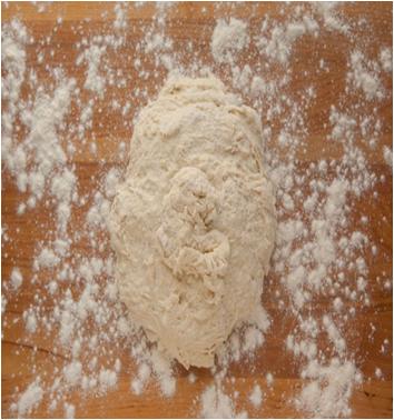 Sprinkle some flour over the work surface and place the lose dough on the top.
