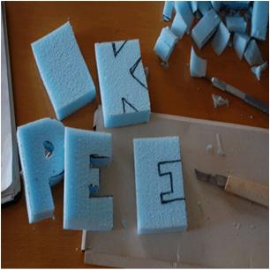 Now place the foam board on a smooth surface and use a pencil and scale to sketch the base for each fence post. Cut them carefully using a cutter knife.
