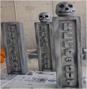 Take advantage of the leftover pieces of the foam board and cut out letters for your warning sign and skulls. Your warning letters can be something like “Hazard”, “Turn Back!”, “Danger and “Dead End!” etc.