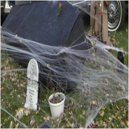 Ready-made spider webs are easily available in the market. Buy and add them to your Halloween graveyard. You can spread the spider webs around the parked car and the added coffin.