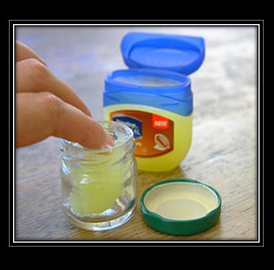 Grab a small empty lip balm pot and place about a handful of original Vaseline in it.