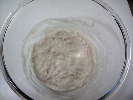 Take a large bowl, and mix 3 cups of whole wheat flour with 1 ½ cups of slightly warm water. Set aside the mixture for around 30 minutes.