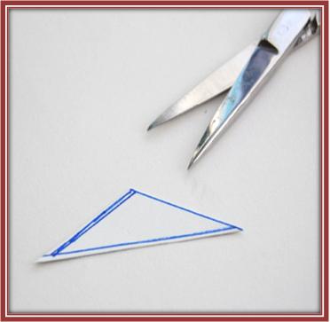Place your scrap cardboard on a smooth surface and draw a perfect triangle on it with the help of the straight edge of the ruler.  Keep the height of the triangle according to your choice, keeping the height of the zigzag cuts in mind.
