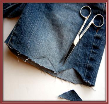 Now, place your ripped pair of jeans on a flat surface and remove all its wrinkles with your hands so that you can get a clear idea where to cut it from. Take a medium or large sharp scissor and cut your old jeans into short, keeping your desired length in mind.