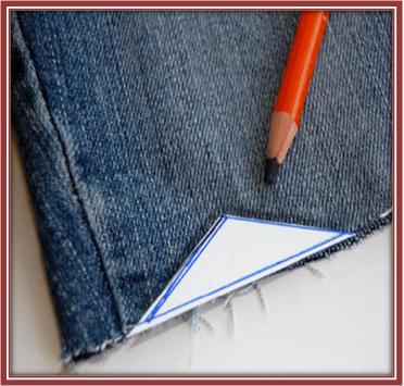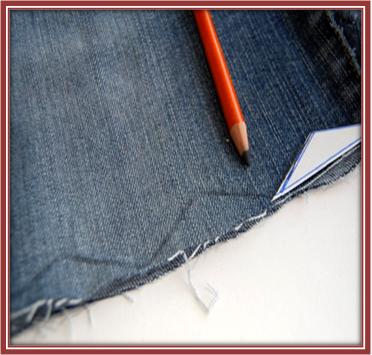 Now it is the time to give it a zigzag look. Place the triangle cutout on the bottom edge of your short and carefully draw an outline with the help of a lead pencil.