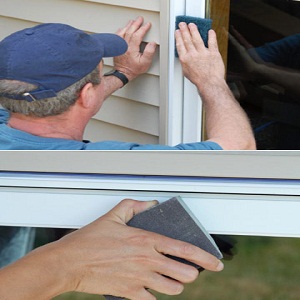 Before starting to paint, spend time on the surface. You need to a have a clean surface. Aluminium sidings tend to be covered with flaky chaulky layer. Attach a scrub brush to the sander, dip into a bucket of soapy water and start cleaning the aluminium. Cover all parts well. You might need a ladder to reach all parts.