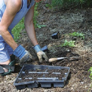 As you plant the cover, back fill with the dug up soil. Apply a layer of mulch over it all. The mulch will keep off weeds and retain moisture.