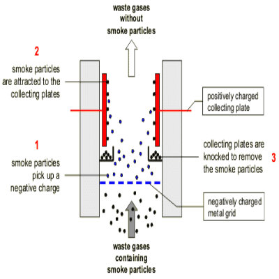 After production, Sulphur Dioxide is purified in order to remove impurities such as arsenic compounds, which may poison the catalyst. This purification is done by passing Sulphur Dioxide through an Electrostatic Dust Precipitator. The dust particles are then charged and separated by getting attracted towards the oppositely charged plates.