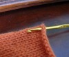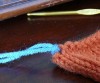 After that grab one end of the scarf and put a crochet hook into a loop.