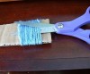 Cut the wrapped yarn around the card in a straight line with the help of a scissor. This will give you lot of pieces of fringe, but they will be double in length as compared to the finished fringe.