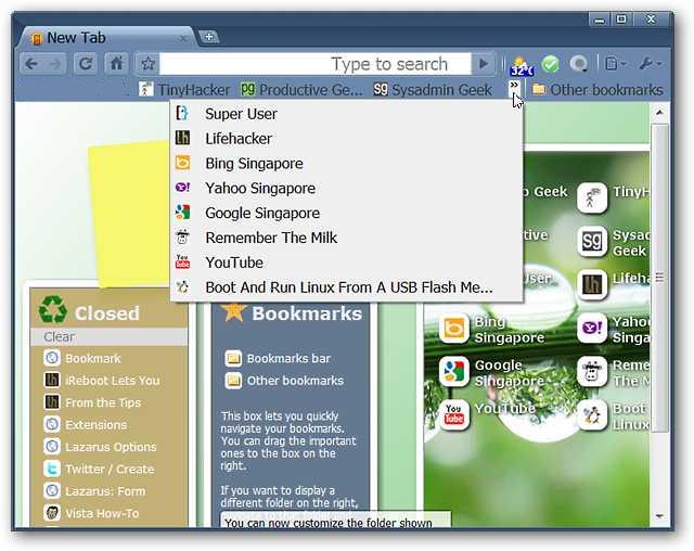 If your browser looks exactly the below image then it has not taken long to instantly fill up your Bookmarks Toolbar. It is a bit difficult to access the drop-down section.