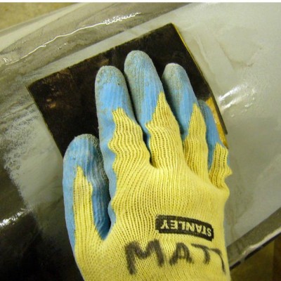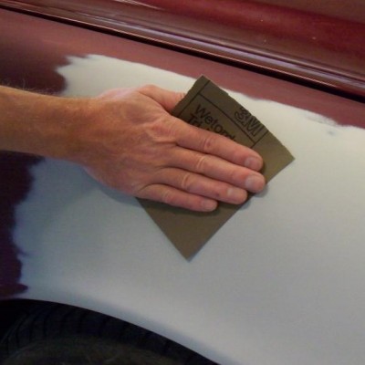 When the primer coat is completely dry, remove the masking tape and paper. Wet the repair area using with water. You can use a spray bottle for the purpose. Also wet the 400-grit sandpaper and using it, sand the primer in a straight back and forth motion. Be careful not to sand off too much primer. Sand the primer until it is smooth and your repair work is complete, except painting the repaired area of course.