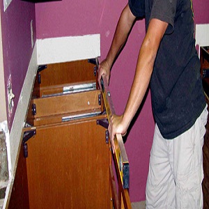 Now that you have removed the sink, cook top and took the measurements, it is time to pull out the old counter top. Unscrew any bolts that attach the top to the kitchen cabinets. Use the utility knife to score away the caulk lines. Use a crowbar and hammer to separate the top from the wall . Do the same between the top and the cabinets. Now that the top has loosened from all sides, ask for help to take it off from a partner. Clean up the caulk and residues from the area.
