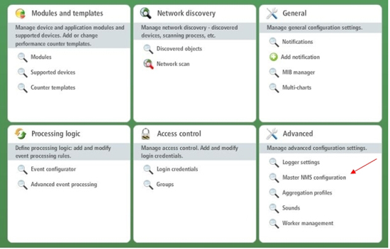 b) From the main menu, go to Settings and then select Master NMS Configuration.