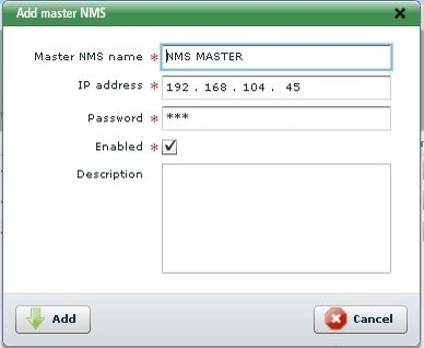 d) Grant master's NMS name, IP address and set password and hit the Add button for confirmation.