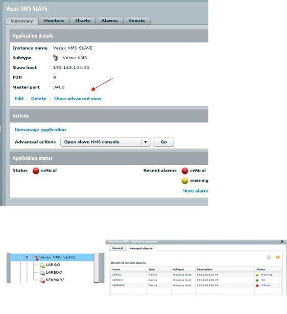 d) Managed objects tab shows all devices that were selected to be shown in the master instance.  These devices are also available in the aspects tree of the slave instance node.