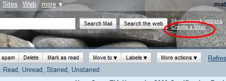 Sign in to your Gmail account, and click on Create a filter which is located on the right side of Search the web.