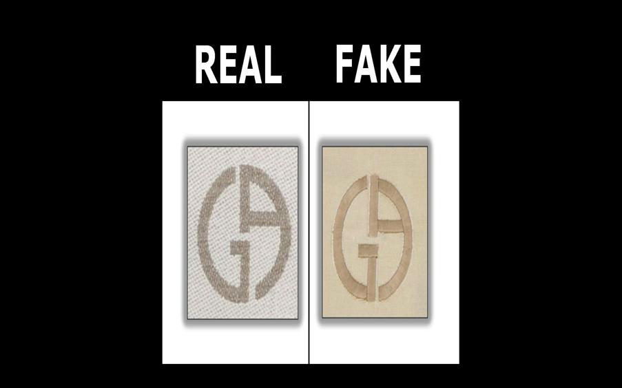 Presence of logo on Armani fabric is necessary and no matter how small the item is - the brand's symbol plays an eminent role in proving the authenticity of the label. The clothing line lies under Giorgio Armani so you will usually find two Gs facing each other in an upside down position. The clarity and neatness of the logo has to be judged very carefully. On the fabric, the logo is basically stitched.