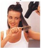 Work on each section one by one by holding the dryer in one hand and a styling brush in the other, right below the first section of hair and keep moving the brush downward with hairs tight.