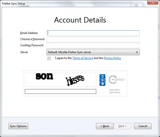 For those users who are setting up Firefox Sync for the first time, select the option Set up Firefox Sync and click on Create a New Account.