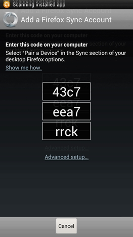 You will be asked by the Firefox to type the keys that the device generates. When you type in the correct key, all the data will be instantly synced.