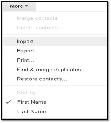 Click the drop down menu on the right side of the “More” link, navigate to the “Import” link and hit it.