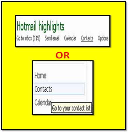 Click the “Contacts List” link right below the “Hotmail highlights” link. On the other hand, if you already opened the Hotmail inbox, then you can find this link in the lower-left corner of the page - in between the “Home” and the “Calendar” Link.