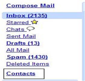 Go to the upper left side of the Gmail email menu bar and click the “Contacts” link.