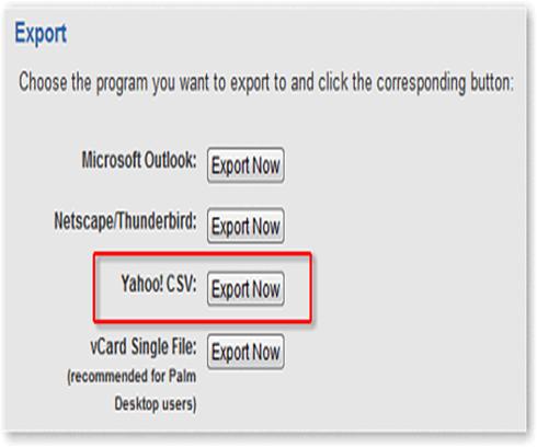 Now, scroll down to the Export section and click the “Export Now” link on the right side of Yahoo! CSV.