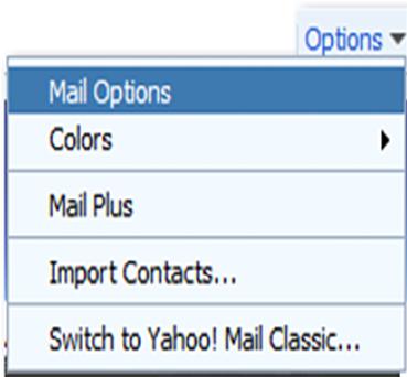 Once you get into your Yahoo! email account, find the “Options” tab on the right top corner of the page, and click the drop down menu.