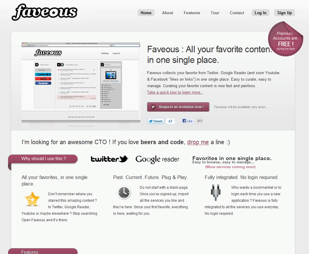 Sometimes you are surfing the internet on your smart phone and find some interesting stuff that you don’t want to read right now or don’t feel comfortable in viewing it in the small Screen of your Cell Phone, just bookmark the page on Faveous and browse it later anytime on the widescreen of your personal computer. Faveous provides many options to the users; the link can be marked as favourite, you can fave it (a term originated from the word tweet and basically means the same thing in Faveous), or tweet about it with just a press of a button.