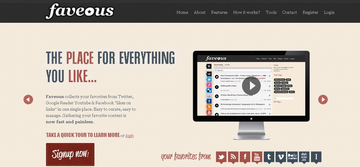 Faveous collects your favourite pages from popular social networking sites such as Facebook, Twitter, and Google Play and combine them into one single entity. It integrates with most of the social networking pages without installing and setting up anything. If you were browsing something useful last night and can’t remember where you found it, Faveous is a tool created to help you with just that.