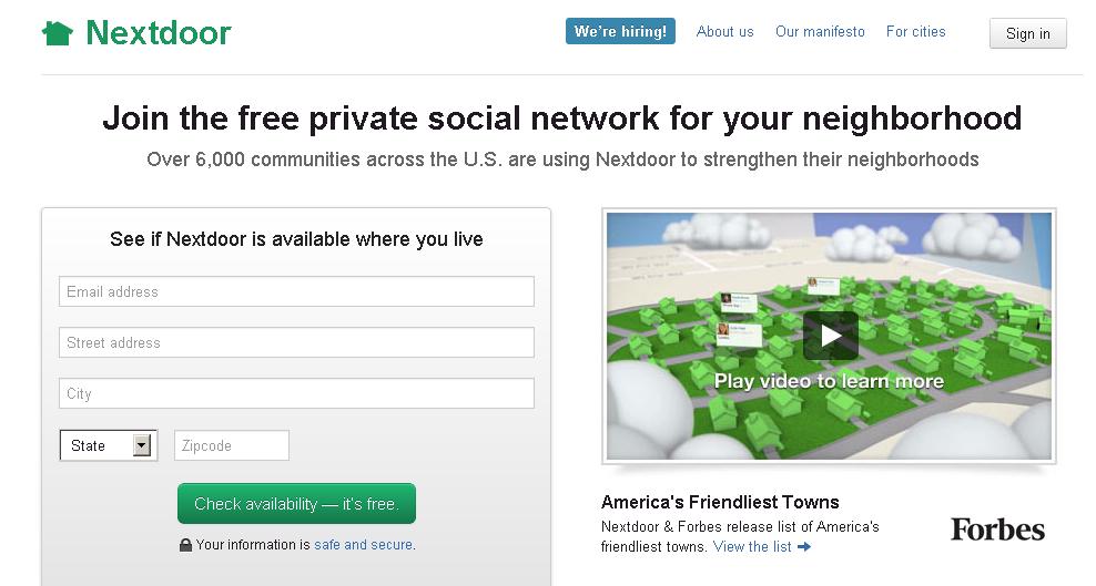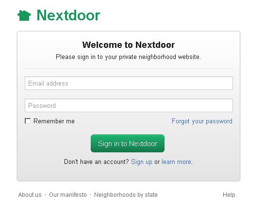 First of all go to http://nextdoor.com and check whether their service is available in your locality or not. Currently 6000 neighbourhoods are available all across the United States of America. Enter City, Street number, email address and zip code and click on the check availability button. It will return the result within a few moments. If the service exists in your neighbourhood click on the sign in button on the top right corner of the screen. It will open another page and ask you to fill your login details. There is a sign up button below. Click on it and wait for the page to load.